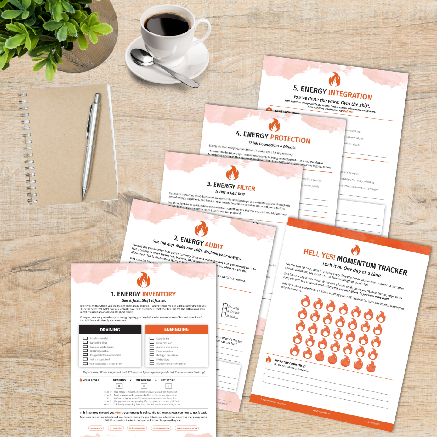 The Energy Inventory is just the first step. The full Hell Yes Reset gives you all five worksheets - the complete strategic framework to stop the leaks and get your energy back.